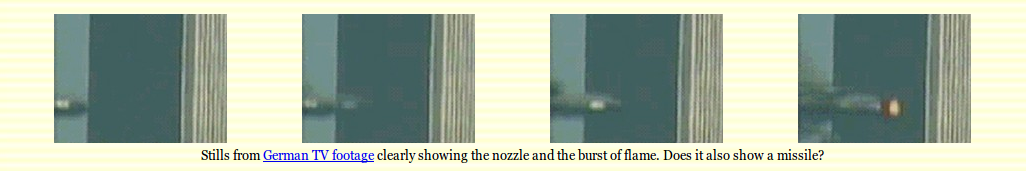 Ok, I probably didn't phrase the question the right way. In the photo we see a fireball before the plane enters the bldg. CT sites aren't solely saying it was a "missile" that created the hole, I've seen some say that it was a military plane that carried a missile on its flight to the WTC. Some of these sites have proposed that the plane fired a missile into the bldg before the plane entered the bldg. Their theory behind this stems from the aluminum in the plane not being strong enough to enter the steal columns.
