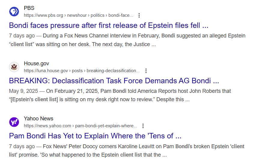 summary of what the article will say, hence the lack of quotes around the sentence as a whole. The link from the Hill even shows her full quote "It's sitting ...". KOMO and the last Yahoo link don't put quotes around "client list" at all.