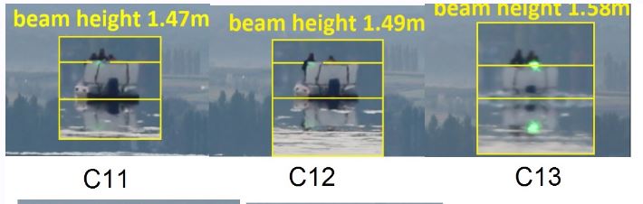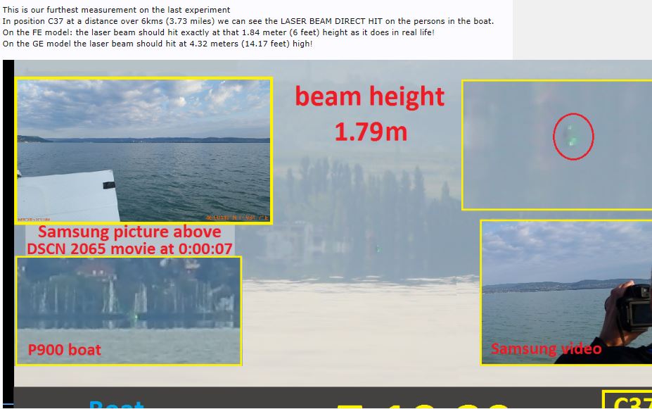 In position C37 at a distance over 6kms (3.73 miles) we can see the laser beam direct hit in the camera in the boat.