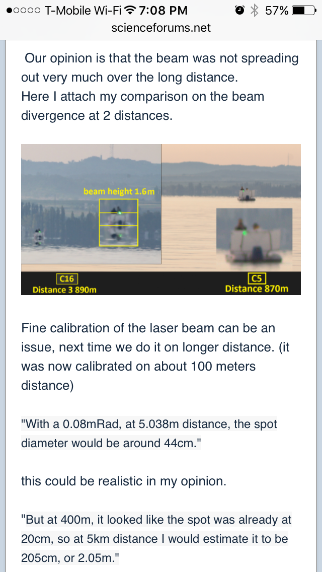 @DarkStar Any chance you can call him out on saying the beam isn't diverging and then comparing a hit on the board (c5) and a hit on the retro reflective patch (c16)? (Page 6, just before his response to you)