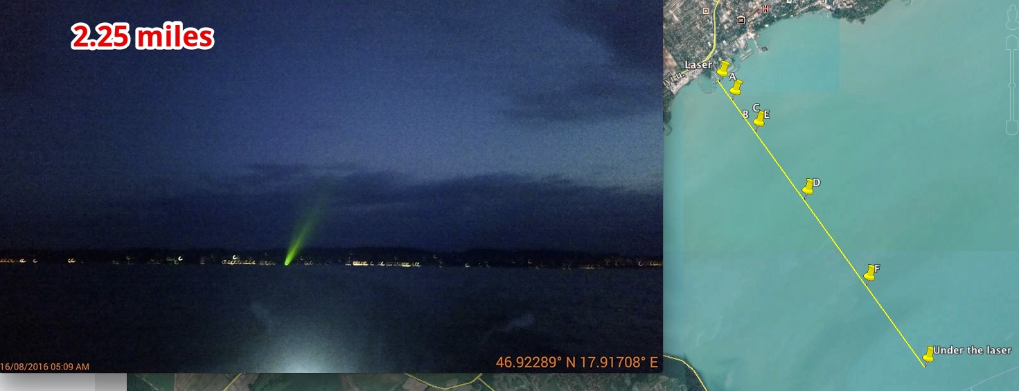 You see this? It's the laser at 1.6 meters at 5.6 miles, in the evening when it's cooler and refraction is to a minimum. If you understood how refraction works you'd see that this is absolute proof of zero curvature