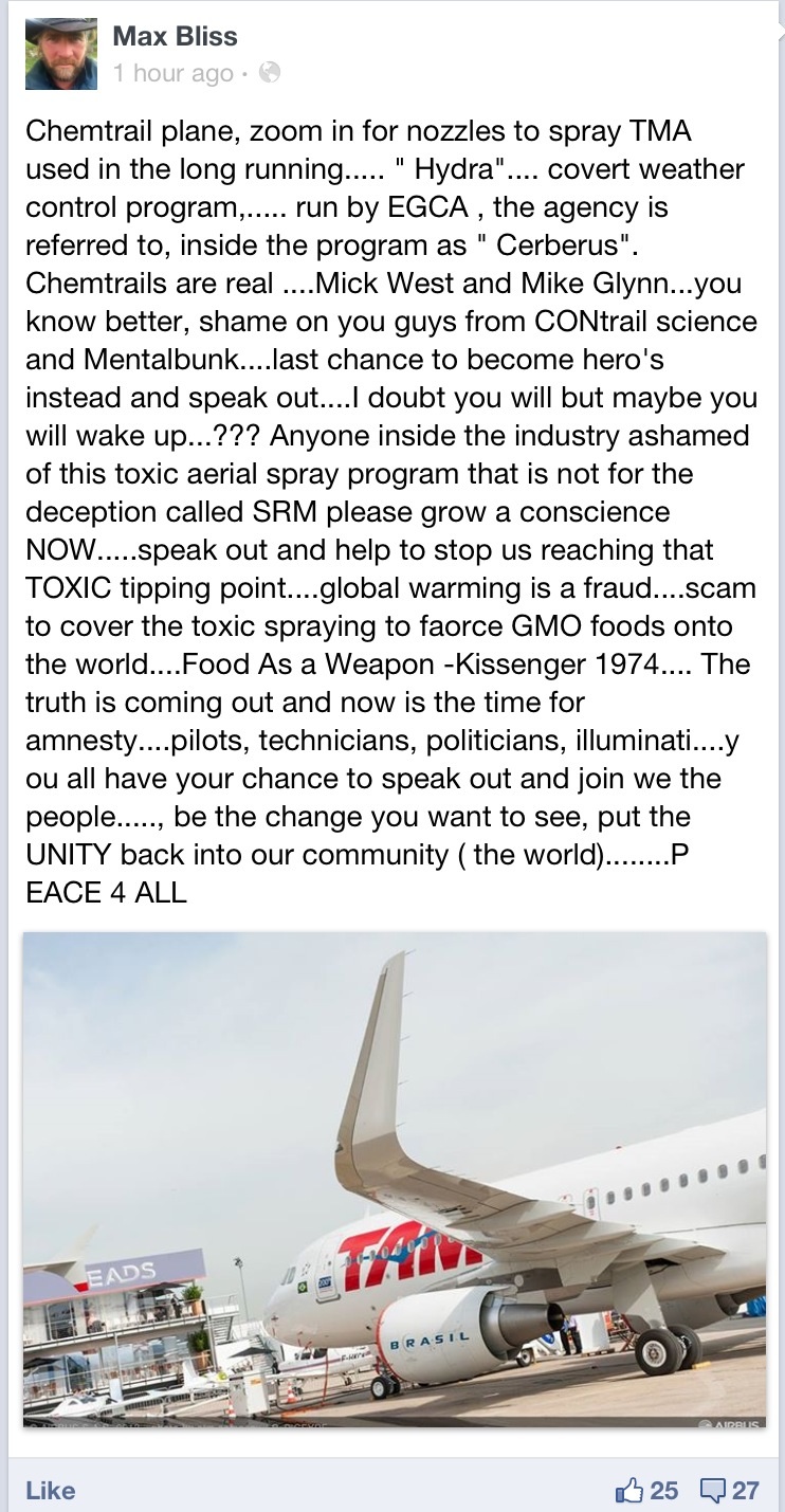 I commented on a Facebook post about getting the stuff tested and he tried to friend me. er No thanks. It may well have been a pollen release or something but a lack of dead animals suggest a lack of toxicity. Also who owns a military respirator and why? Well I know one but less said the better![]()