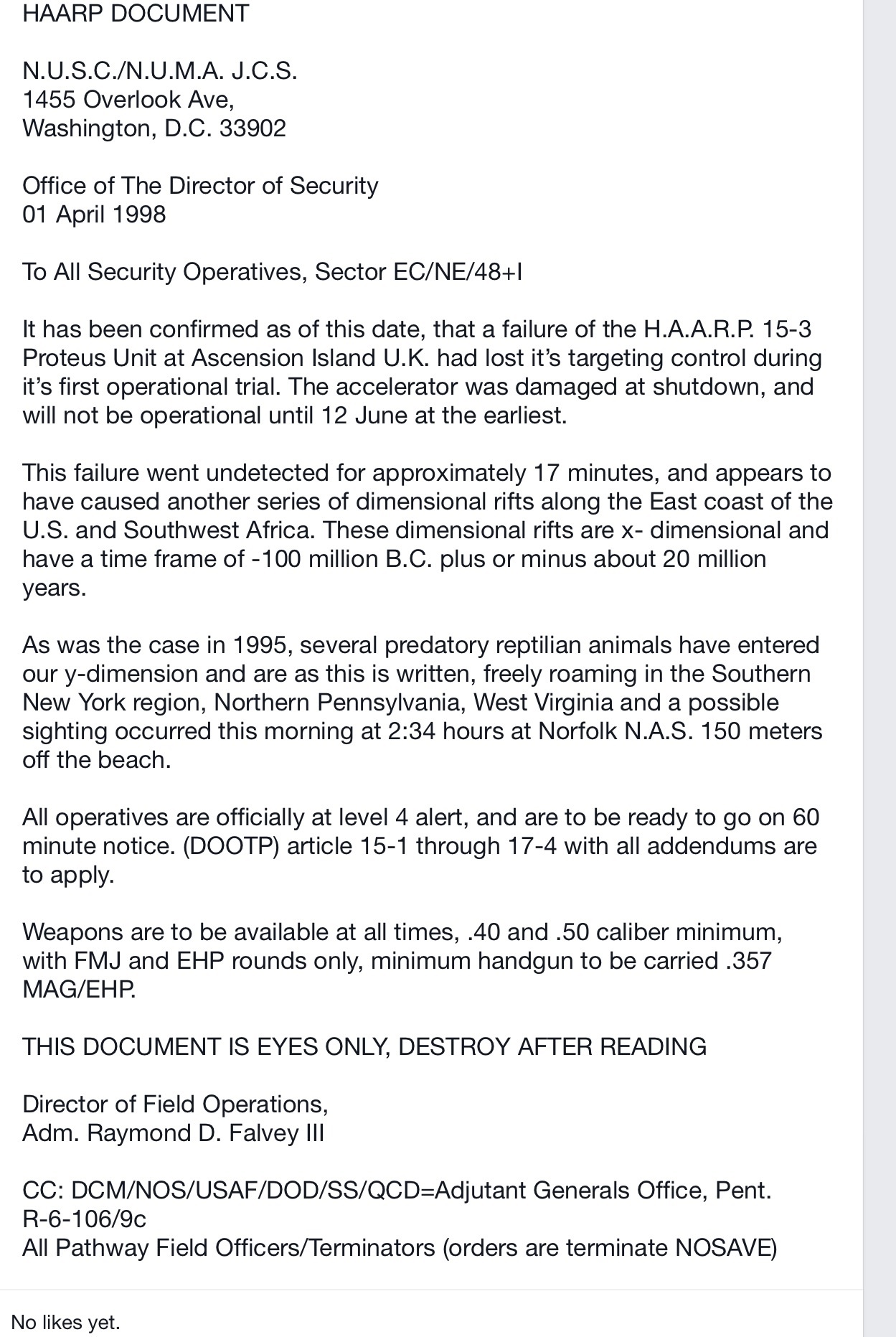 The following is clearly a hoax, and due to no-one yet liking it on FB, it seems not many others are fooled.