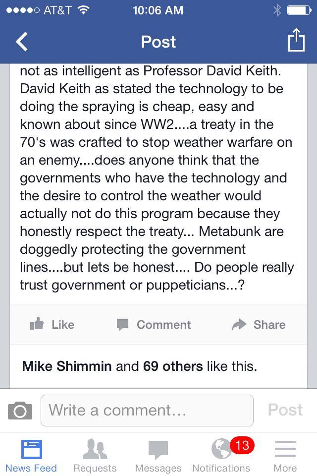 It is a sham so many people get stuck on chemtrails. there are other more insidious things like blatant government violence. Even if chemtrails were true the direct violence would be worse. I guess those on this forum could genuinely claim they are just reacting to the data being presented by chemtrail theorists.