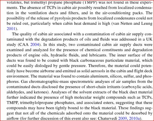 Max has deliberately cropped the reference to delete the fact that the subject contamination is Tri-Cresyl Phosphate, TCP, the known nerve agent by-product of burnt engine oil which is the cause of AeroToxic syndrome. Max is so desperate to ignore the voluminous science on the subject in order to blame his mythical contrails, he resorts to this rather pathetic and easily debunked sort of post.