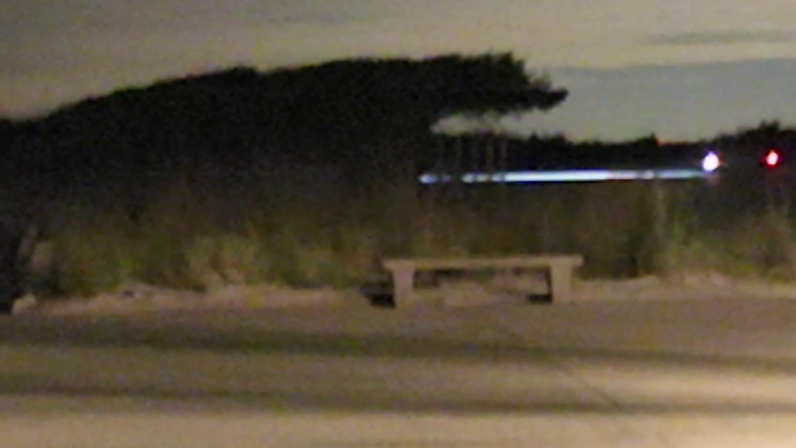 But this didn't sit well with me because 1) the shadow doesn't match, 2) there's a wire fence behind it which doesn't appear in the video, 3) the foliage and other background landmarks didn't seem to match, and 4) I was 100% certain those lights were from a car.