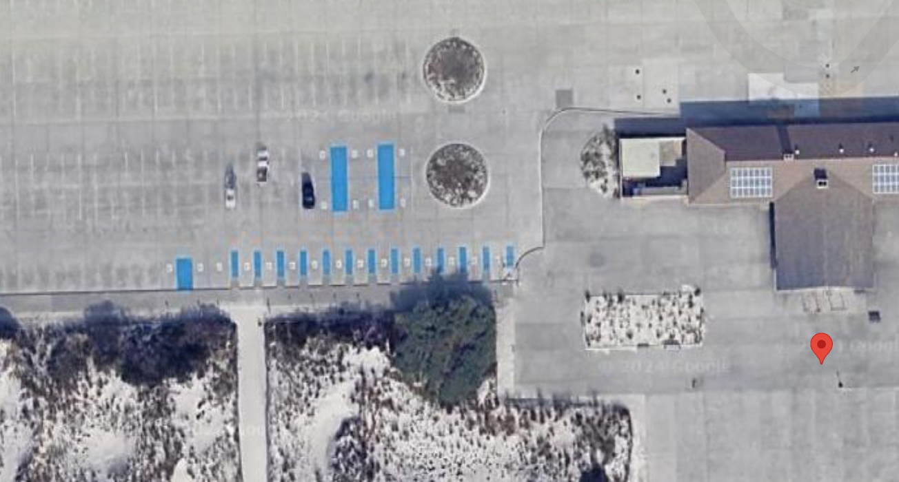 Here, the pin is their claimed location. The red line is their claimed heading. The two blue lines are north-south concrete lines. The yellow line is a rough heading based on the concrete lines.