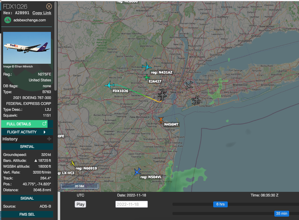 I actually suggested this 767 in post #3 of this thread :cool: , but went back and edited my post to discount it because it didnt match with the viewing direction given by the witness, (The text and screenshot attatchment is still there.)