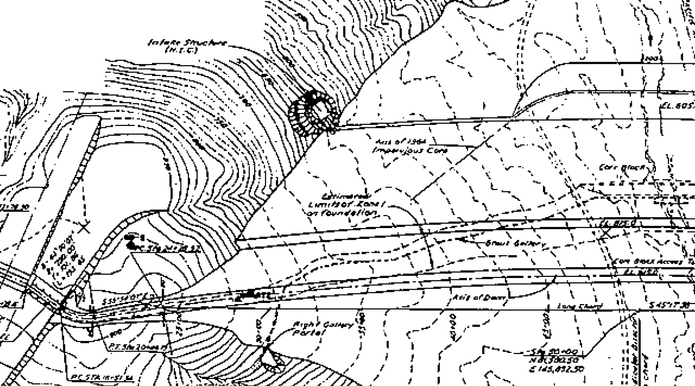 A question was raised about the grating partially visible on the lake side of the dam near the spillway. I actually asked someone working at the lake about this when I was there and they are in fact intakes, but from what he told me they were unfinished.
