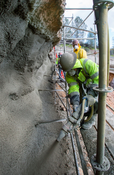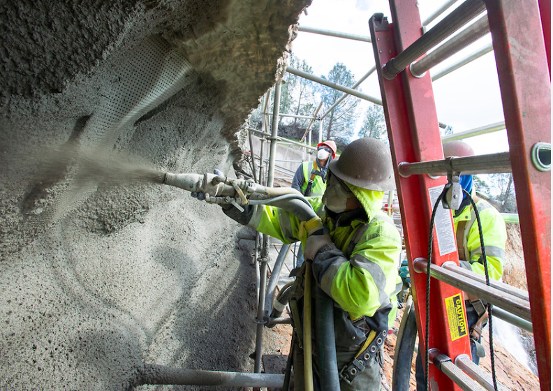 As these show they are in fact applying "shotcrete" to the rock face beneath the edge of the spillway; it remains to be seen whether they do so elsewhere in that area including below in the splash pool: