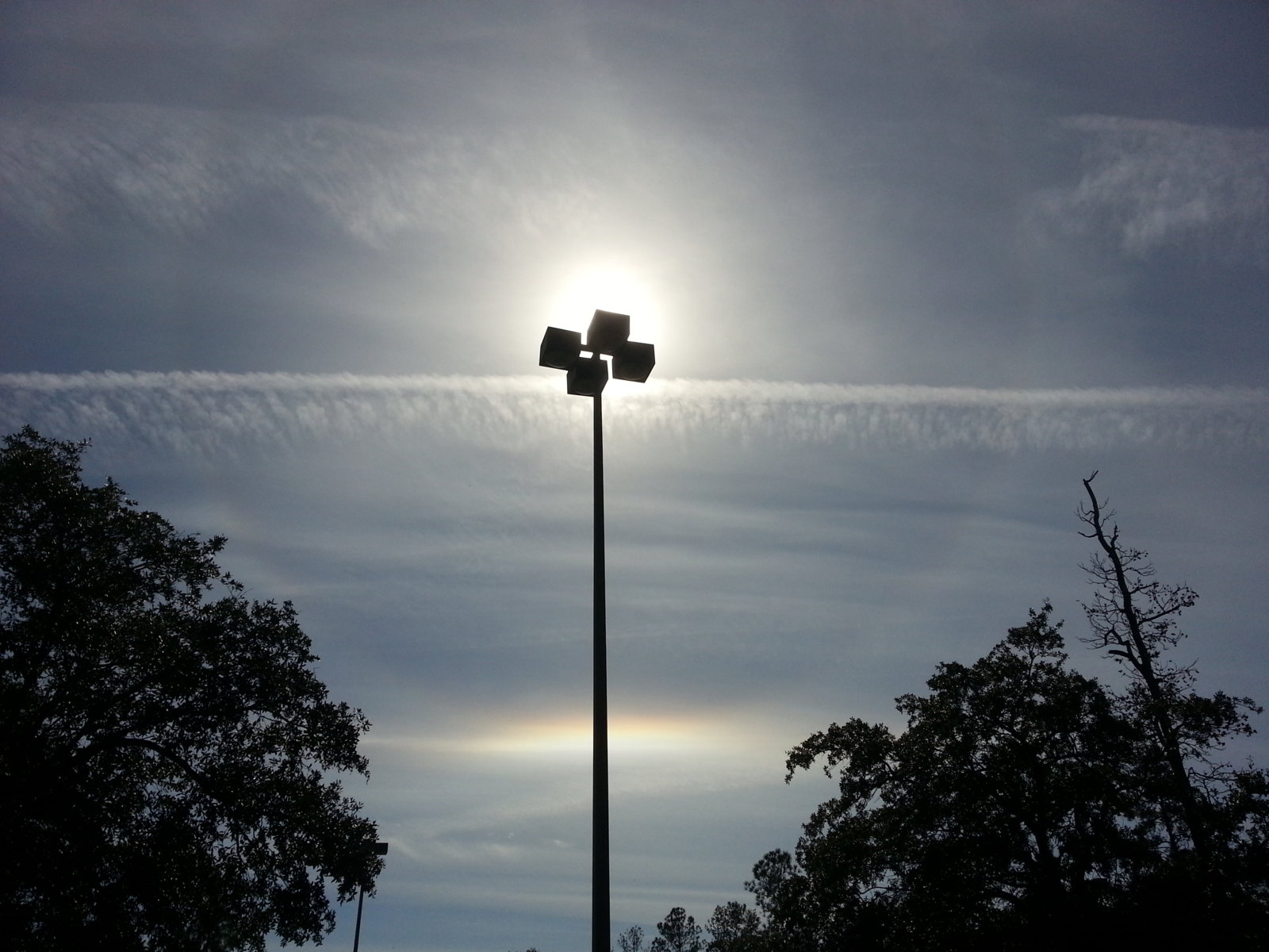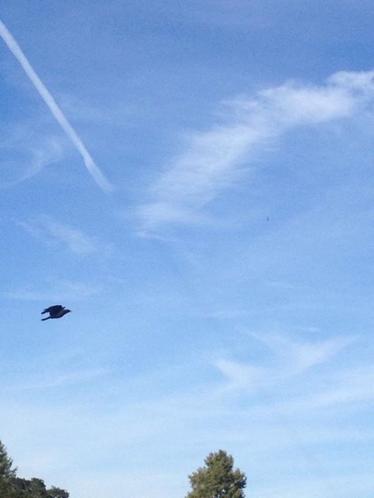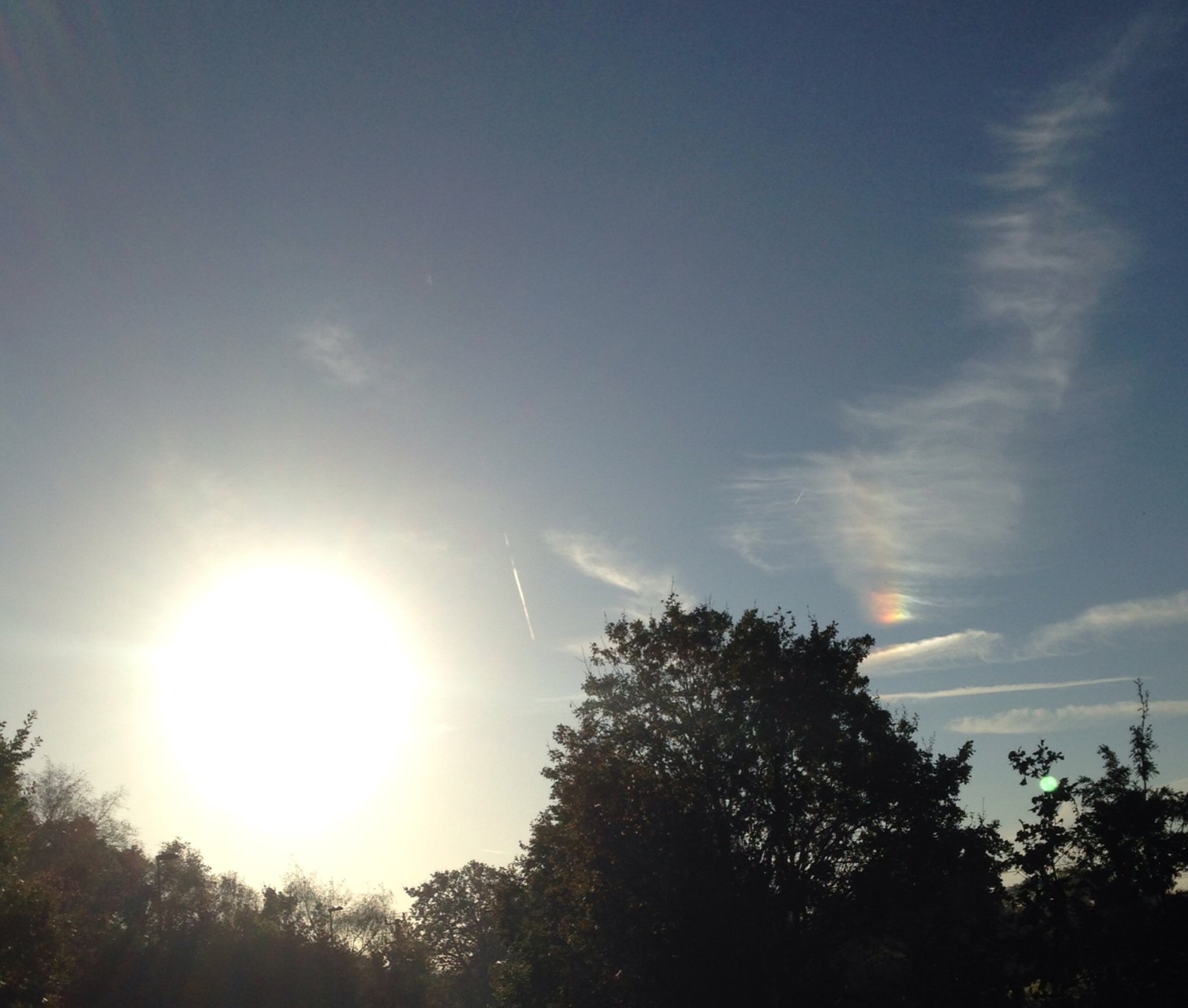 The sky looking east this morning from Hampshire, about an hour ago (7.45am). Straight out of an apocalyptic Facebook post! Anyone who believes in "chemtrails" would have been having kittens...