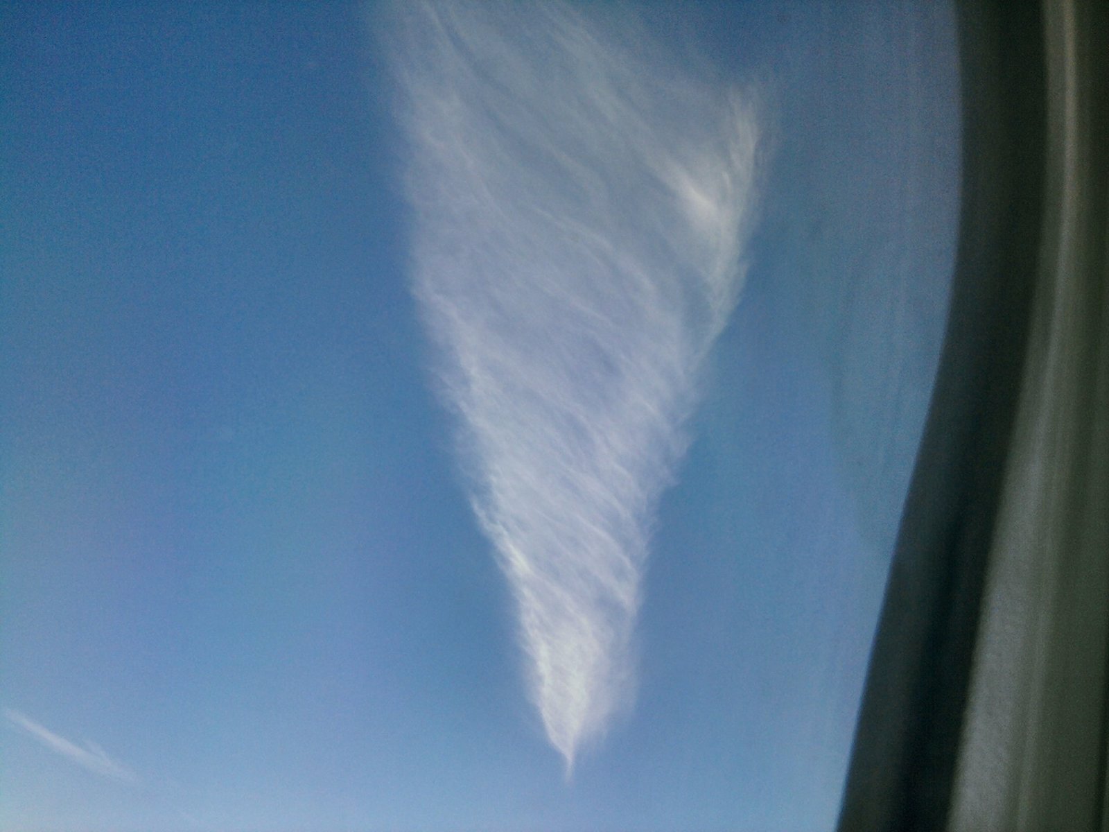 I'll see your Jellyfish and raise you one Swirlyatus. I could only get two quick photos through a dirty plane window with my phone as we were descending into Brisbane on 6th September. It looked far more awesome in real life because it was turning and spreading. As the plane turned I lost sight of it and I don't know what scared the person next to me more - me randomly exclaiming "No, no, don't!" or my explanation of why I said it. :D