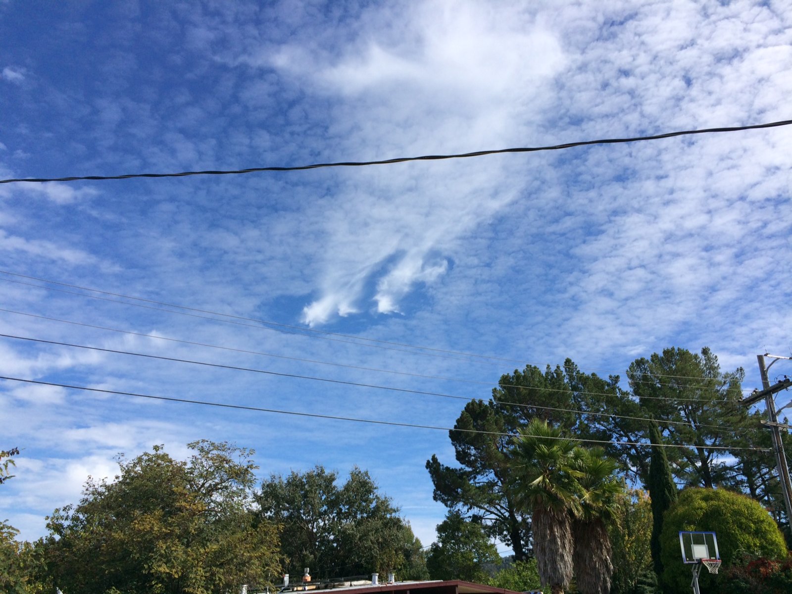 A friend just posted this on Facebook. He is near Santa Rosa. He's wondering why the shadow trail which turns into contrail. Does anyone have any ideas?