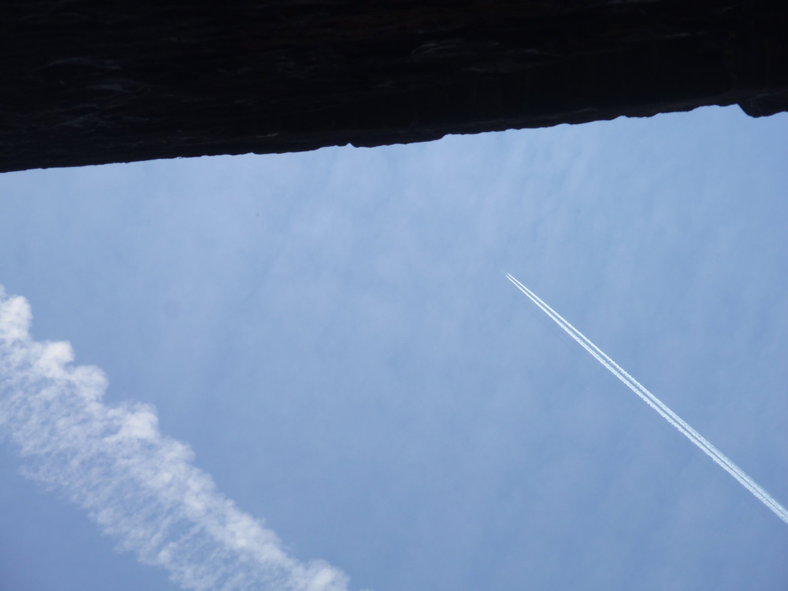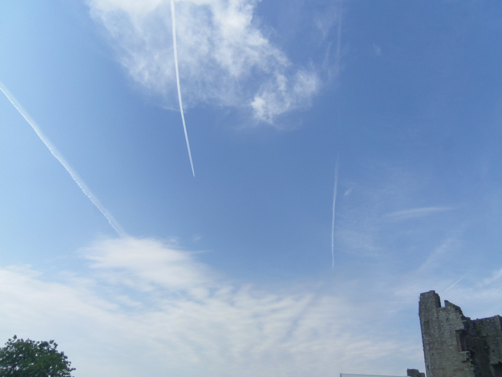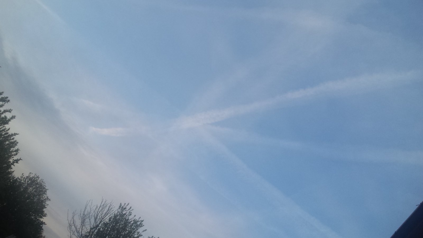 They do not look like distrails to me. More like ordinary gaps in breaking clouds. When and where was this photo taken?I think these are three crossing distrails. There were other, smaller distrails in the same cloud layer. Interested to know if I'm right.