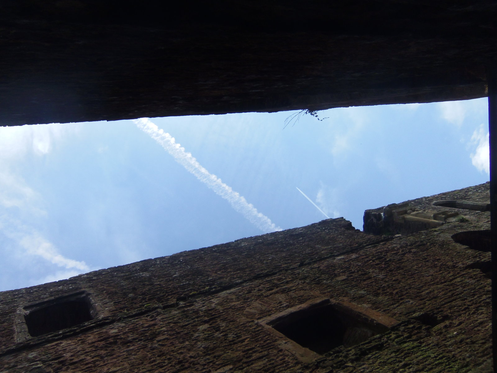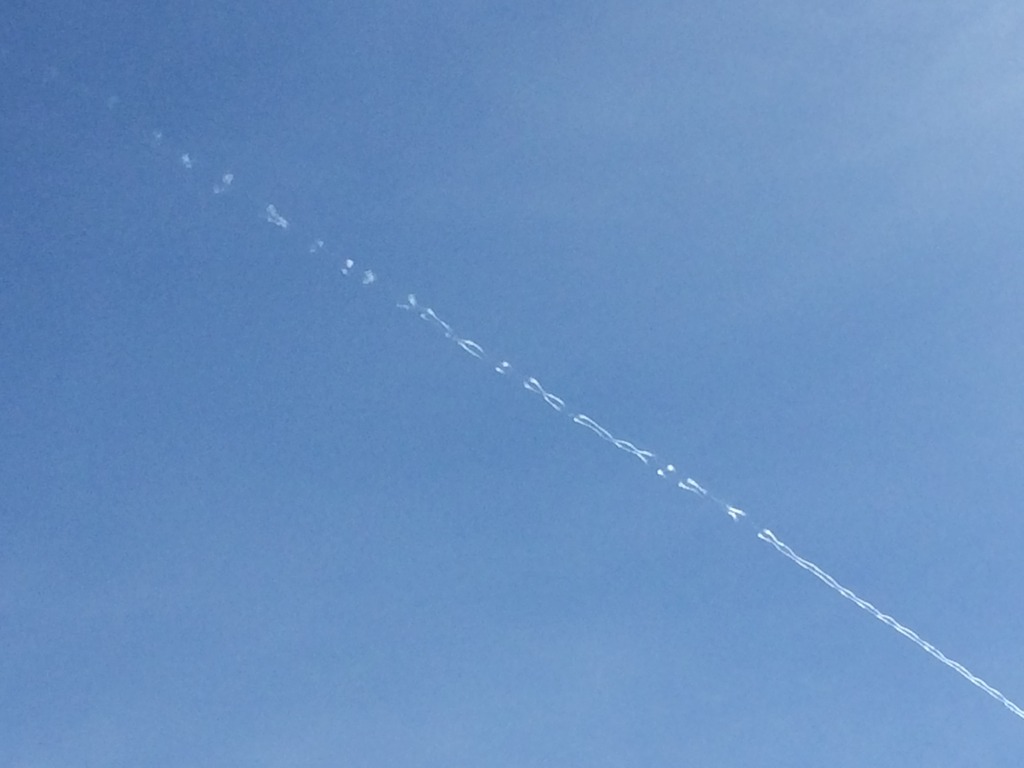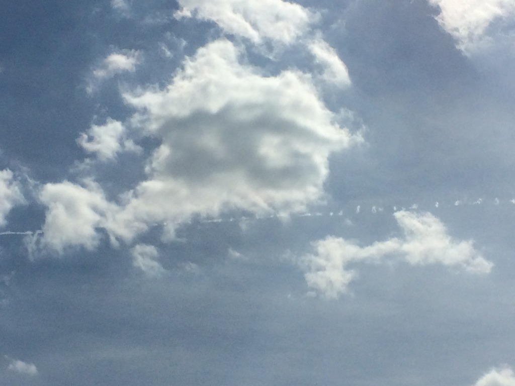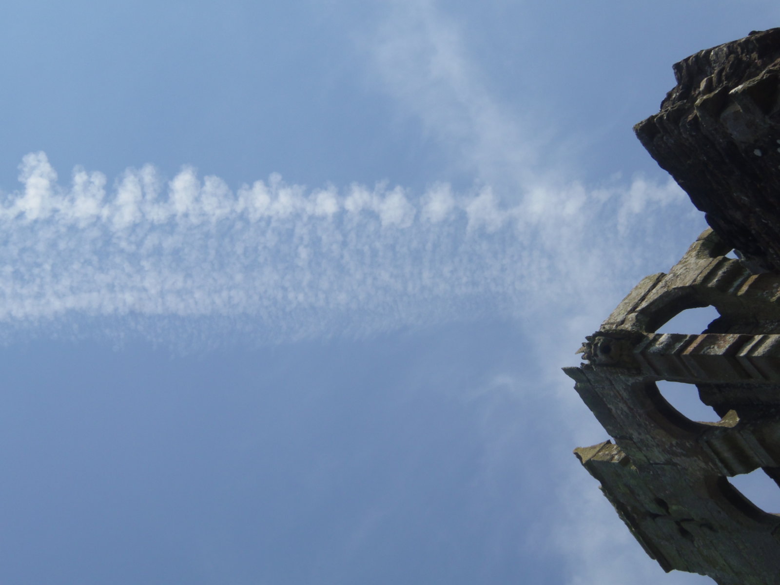 They do not look like distrails to me. More like ordinary gaps in breaking clouds. When and where was this photo taken?I think these are three crossing distrails. There were other, smaller distrails in the same cloud layer. Interested to know if I'm right.