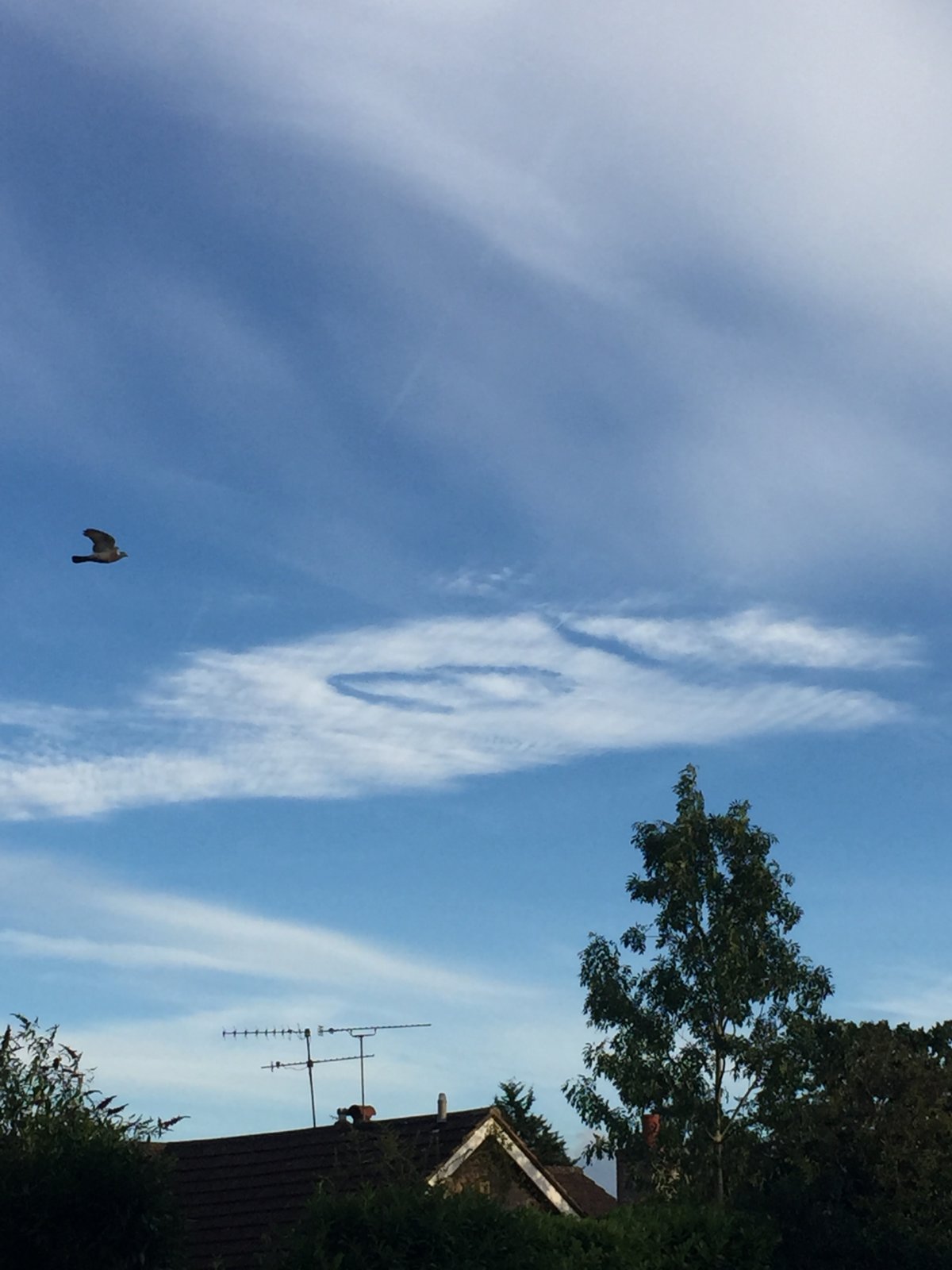 The trails across the southeast are visible on the Met Office radar: this GIF shows half-hourly steps from 8.30am, which is about half an hour after these pics were taken: