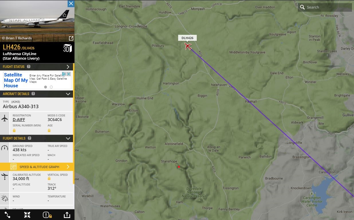 It passed over at 37,000 ft (11 km) even closer to the 'directly overhead' - just about one kilometre from my location: