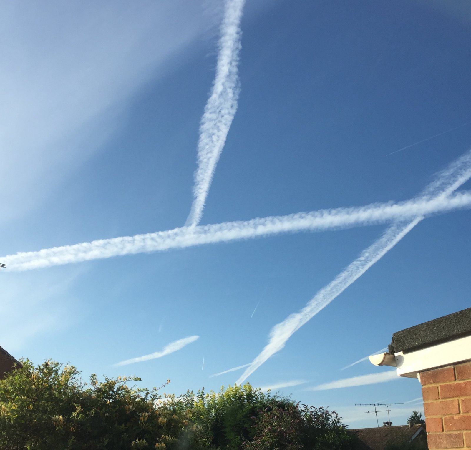 Here you can see a playback: webcam at Lasham near Basingstoke. It stores images for two days past. https://www.webcam-4insiders.com/de/Wetter-Lasham/4674-Lasham-Wetter.phpVery vivid contrails against a blue sky this morning in Hampshire. Within an hour of these photos the sky was mostly covered with cirrus.