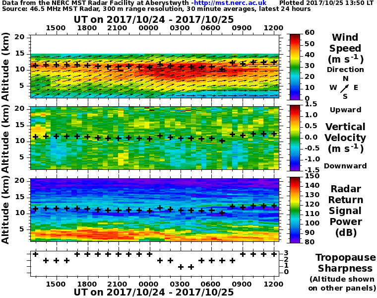 As predicted there was heavy rain yesterday afternoon, and 24 hours after that last picture there's not a trail (or cloud) in sight.