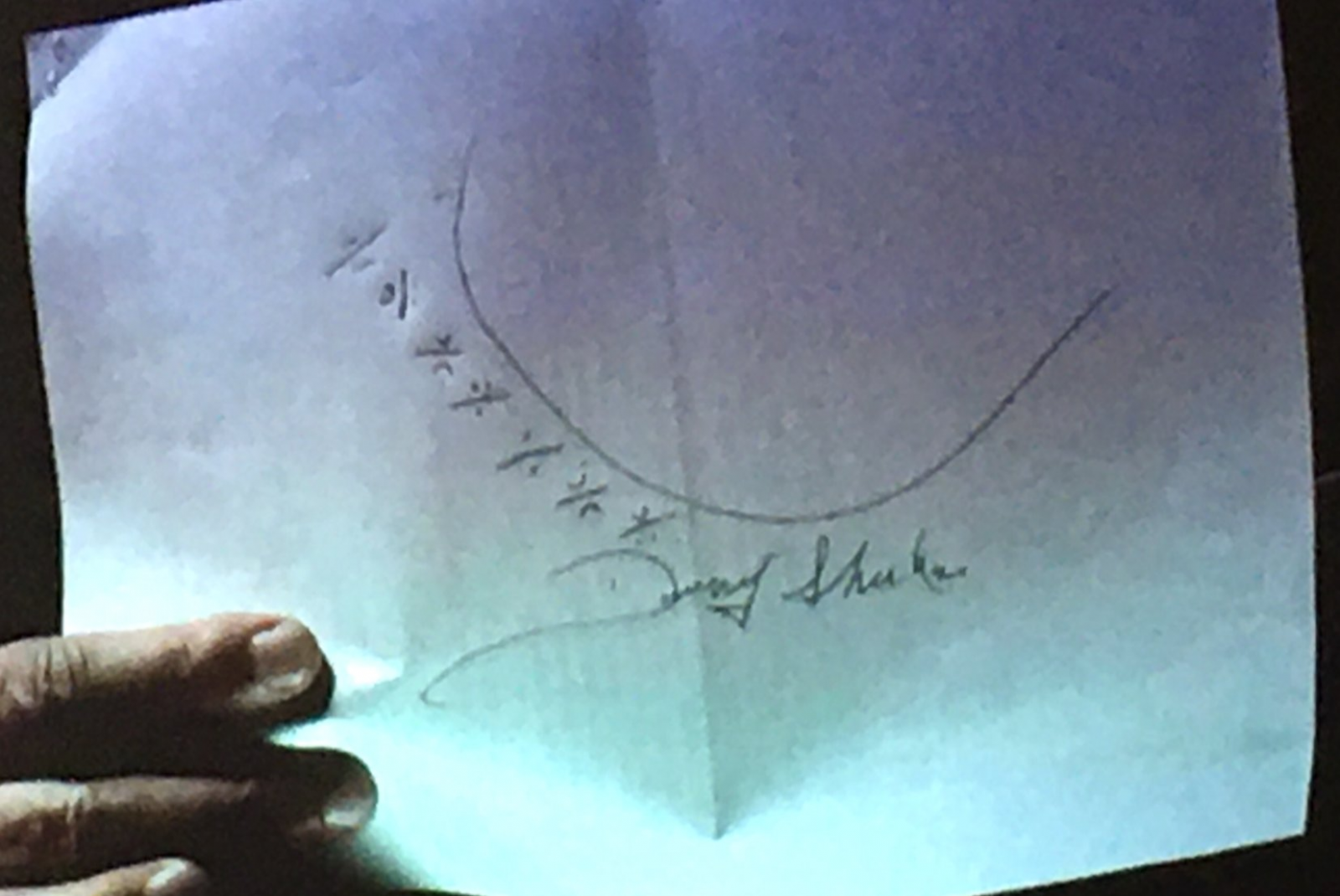 So I went in and what I did is I adjusted the little overhead job that we had, that had the pictures, and I just cranked it down to the exact size of the yellow pad and I flipped open the yellow pad and on the inside of the cardboard at the back end I traced the writing on these different metallic things they have. That's why I still have that. And so we come out and I get to go to JPL and for three hours I then start to talk with them...