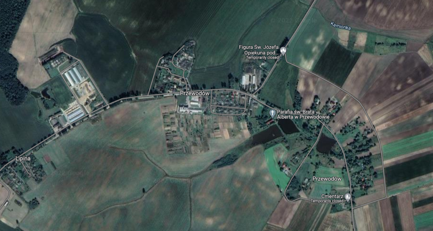 I'm unable to spot any power substations at or near Przewodov on Google Maps, only fields and what looks like agricultural buildings.
