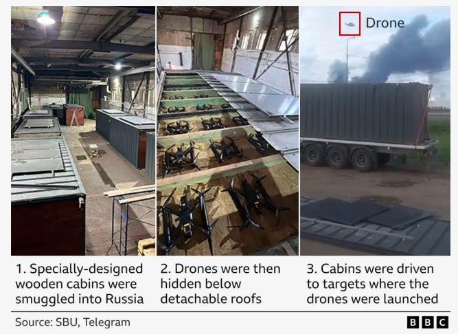 "How Ukraine carried out daring 'Spider Web' attack on Russian bombers", BBC News, Europe: Laura Gozzi & BBC Verify, c. 19:00 UTC, 02 July 2025 https://www.bbc.co.uk/news/articles/cq69qnvj6nlo