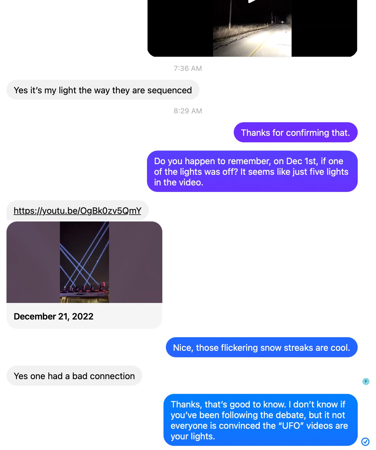 So we continued on our drive, we were going to go to Candy Cane Lane with our daughters, which is a holiday tradition for us. And we drove for 20 miles and the entire 20 miles, we continue to see these lights that would pulse through the sky incredibly fast. There'll be like a five to 32nd delay in between, and then they'd either come back again, the same direction, or they would come back the opposite direction. And it just seemed very odd.