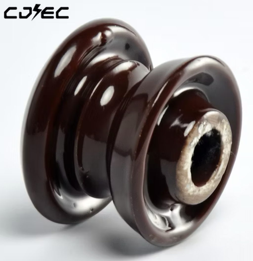 Reel Insulators (sometimes called spool insulators) are used at overhead poles, usually where there is a change in direction of the line so that the strain in the uninsulated cable can be set to the correct tension to enusre the lines don't come into ontact with the other conductors on the line. A splice sometimes is used to carry the current across the gap between two insulator on either side of the pole.