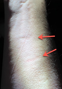 Arm update. After about an hour the line was barely visible. But now, about 2 hours later, and after a shower, it's back. In fact both are