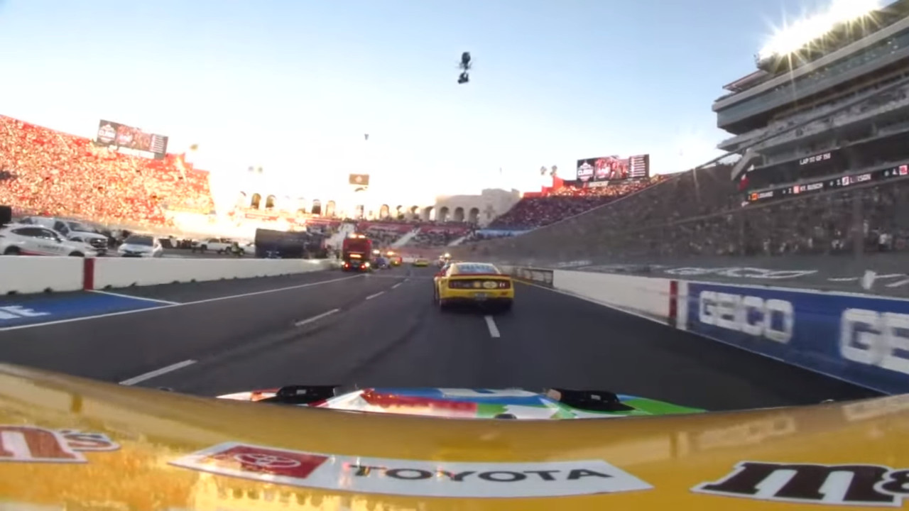 As a somewhat interesting aside concerning the various shapes and sizes of drones, I noticed this guy zooming about the LA Coliseum in a replay of last weekend's NASCAR event there. It's got a camera underneath to provide aerial footage.