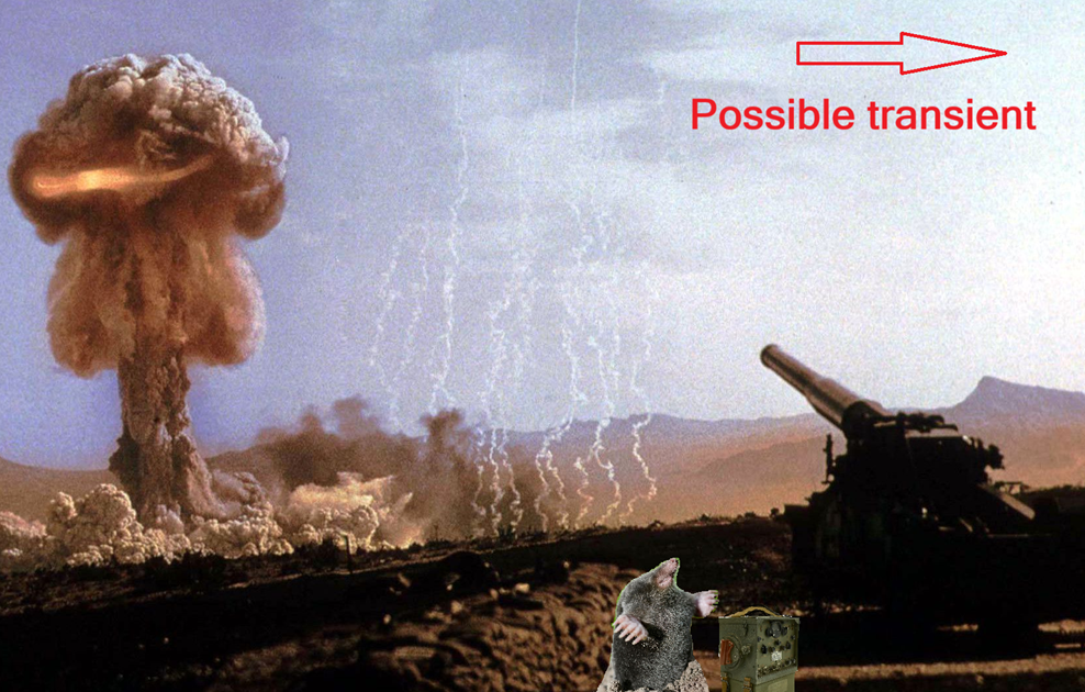 It makes no sense whatsoever. They are just taking something of potential importance, the ~5000 transients from the Solano paper, goosing it up to ~100,000 transients and tying it to a well trod UFO trope because that's what plays in the UFO world. Aliens were visiting Earth in the '50s. Humans were testing nuclear weapons in the '50s. Aliens are concerned with human nuclear testing. Aliens sent probes to gather intell on human nuclear testing. After early 1956, the aliens decided they had what they needed and disappeared.