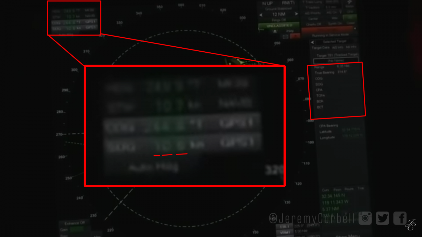 During all other clips where speed is given by the speaker, the SOG is displayed on the right hand panel and seems (to my naked eye, having slowed down and attempted to sharpen the footage the best I can make out are how many digits there are) to align with what is said. However, during the "138 knots" clip, the SOG is not being displayed on the right hand panel. The upper left panel where it would be displayed appears to show a two digit number (with one decimal place).