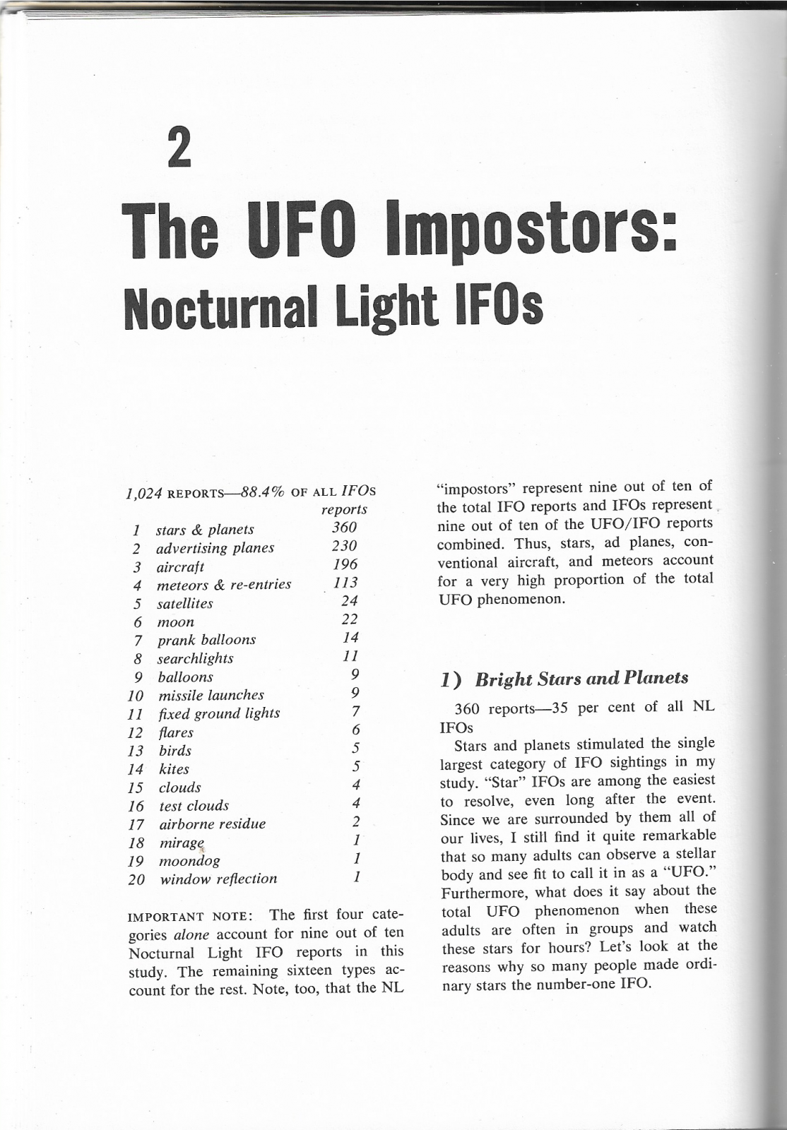 BTW, 1955 was early days. Decades of experience with solved cases have piled up. Many of the unsolved cases in that Blue Book Report can now be solved. By the time Allan Hendry was hired by Hynek to be the full time investigator for CUFOS, he had the accumulated knowledge, and resources, to solve ~95% of the cases that came his way over the CUFOS hotline.