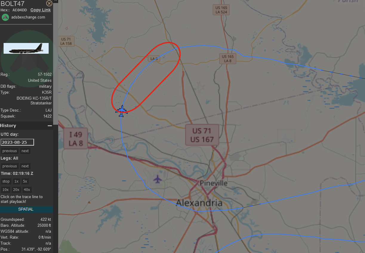 Roll forward to the present and I now know he's located near Alexandria, Louisiana. With this knowledge, I went back to the 16th Aug to a video entitled "GROUND BREAKING PROOF OF MY CONTACT WITH UFO ORBS" (linked below). This video featured a slow-moving "UFO ORB" and faster-moving ones. The Twitter/X post that also publishes this video also gives the time and date, 14 Aug, 21:18 local time.