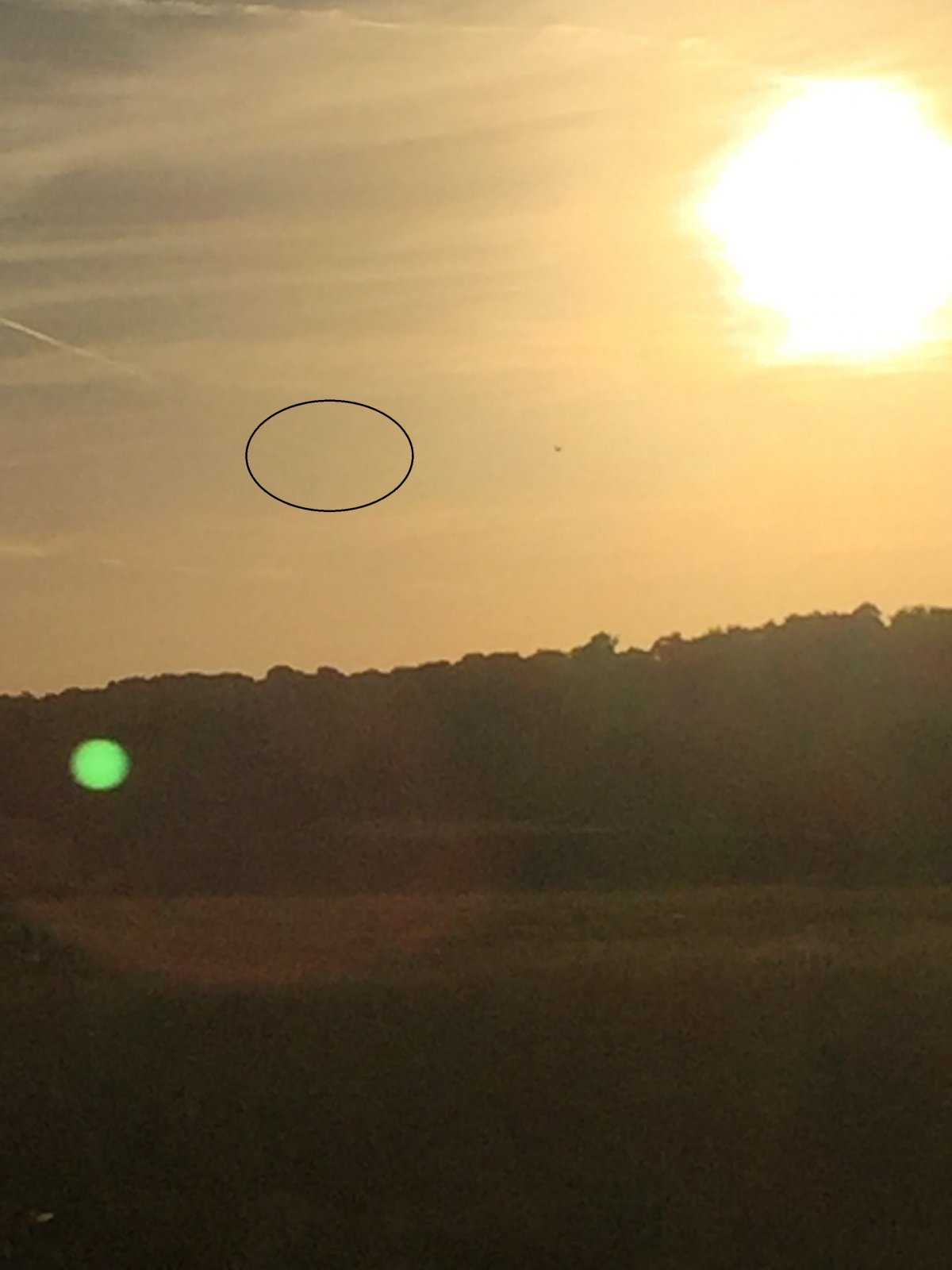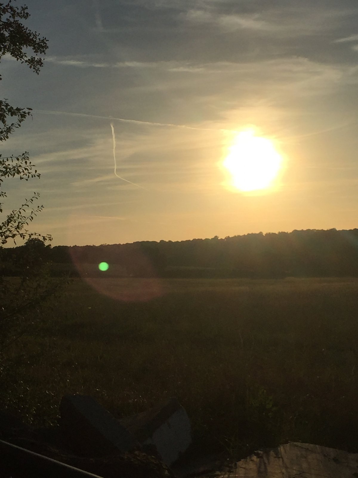 Taken from the A110 near Oakwood (north London) overlooking Trent Park. The camera is facing west. Unfortunately I've misplaced the Flightradar screenshot but the hook of the contrail is over Gloucestershire.