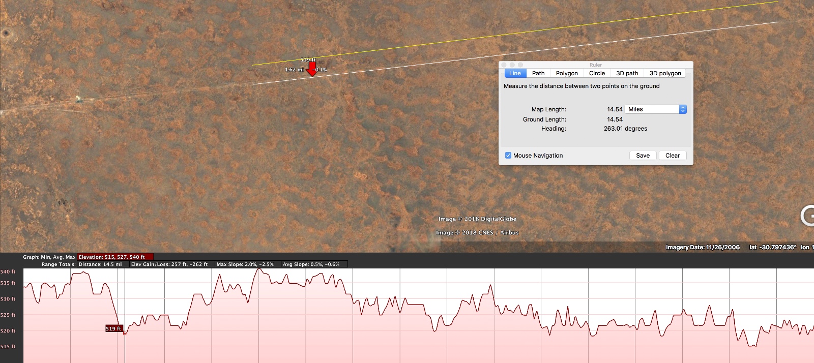 (add a Path, then "Show Elevation Profile" on it).