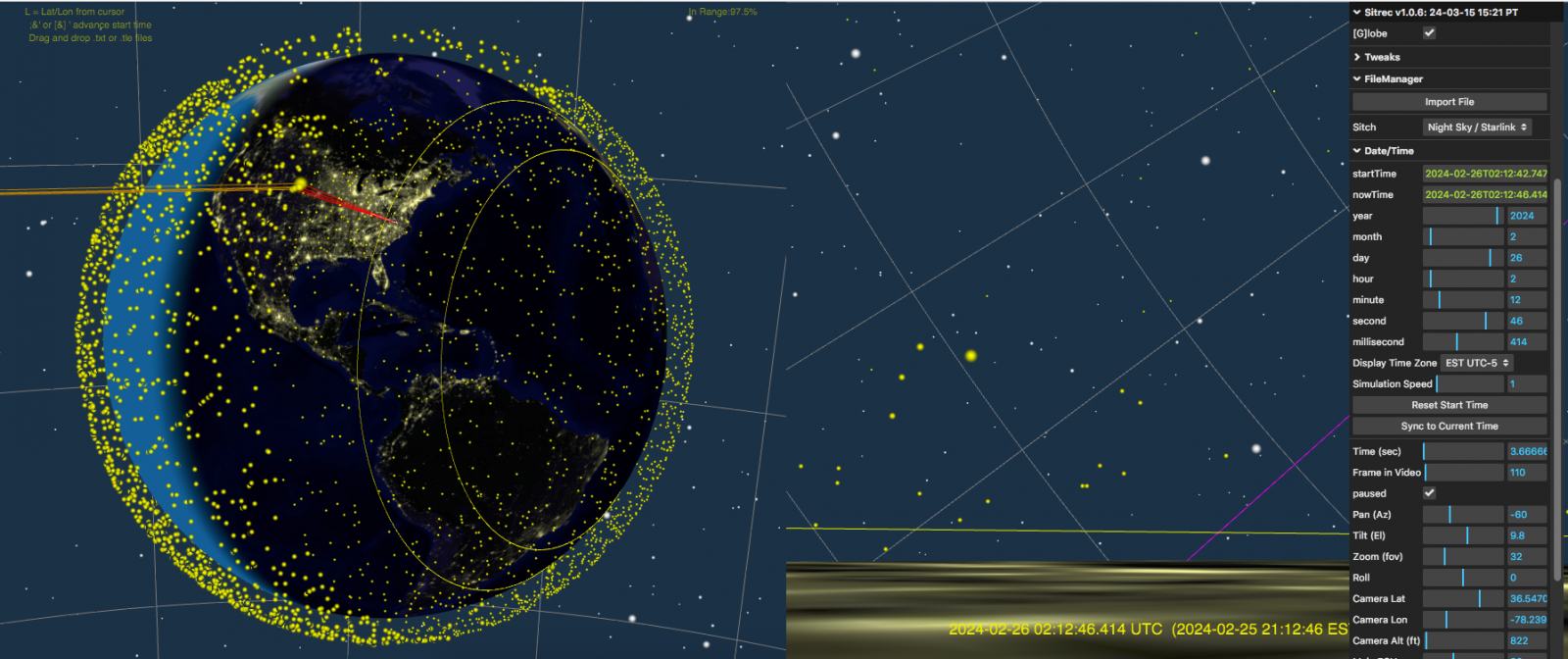 It took over 30 years, but I've finally seen something curious in the skies. Ten days ago on February 14th I was able to witness some lights appearing and moving in the sky (up, down, left, and right, with subtle turns) similar to this video but across greater distances. They were very faint and so I was unable to capture anything but grainy darkness. Yesterday, while flying a similar route (I am a flight attendant), I went up to the flight deck around the same time, to see if I might be lucky enough to spot these lights again.