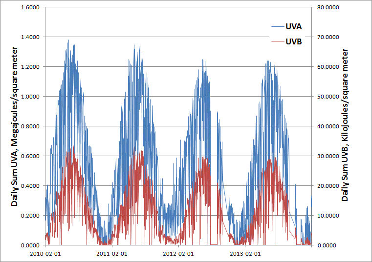 She said that vegetation in general is under extreme, unprecedented stress. In trees, these effects can be seen more in some than others. Maples are hard hit as are oak trees. Plants like tomatoes and peppers have washed out leaves (whitening) caused by sun bleaching, or scorching. This does not prove geoengineering one way or the other, but it did show that UVA and UVB rays are substantially higher than what We are told (or more damaging than previously known). The media does know and promote this. Every year I hear at least once from radio or tv that UV indexes are getting higher, 'be sure to wear Your sunscreen' (which I don't). :P