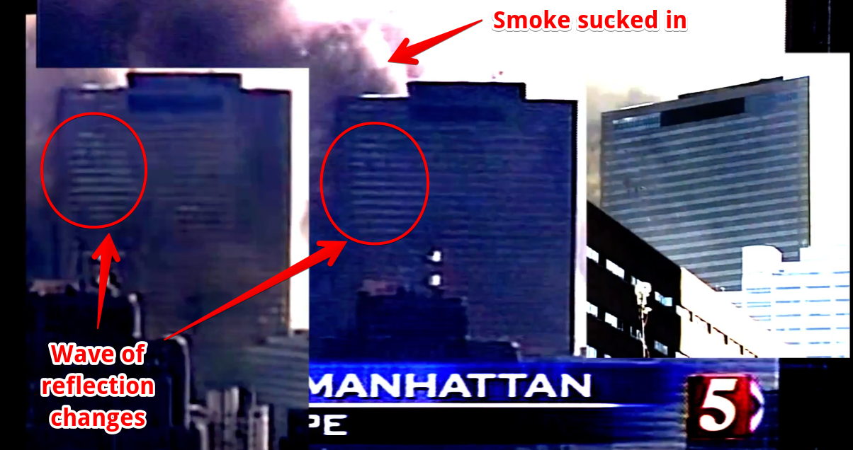 Tony argues the lack of dust coming from the windows indicates there's no collapses behind the "wave". I suggest the air goes out the back. Tony reiterates that he thinks the penthouse stopped after one or two floors.