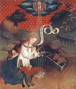 "All things considered the Middle Ages turned out to be a central period for the development of the Angels iconography, whose solutions were to be re-interpreted in a markedly naturalistic way by the later culture of Renaissance and Baroque. Such is the case of the 'Cloud Angels', that would be later propounded as winged figures over soft cushions of vapour."